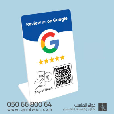 لزيادة تقييمك في قوقل ماب عن طريق بطاقات ان اف سي الذكية ، نحن نقوم ببرمجة بطاقات ان اف سي الذكية للتقييم السريع في قوقل ماب بمجرد ملامسة البطاقة لا حاجة للعميل سوى ان يضع التقييم بشكل سريع